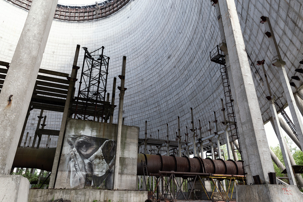 The Duga early warning radar facility with propaganda room, gym and even a school. Next, an abandoned Summer Camp, Kindergarten in the woods & a half built cooling tower next to the Chernobyl reactor with artwork by the street artist Guido van Helten. Then onto the abandoned town of Pripyat, built to house the plants workforce and once home to 50,000 residents (17,000 of whom were children). Compared to other Soviet towns, the facilities in this model town must have seemed incredible; multiple gymnasiums, pools, schools and even a supermarket. Onto school No.3, complete with basement carpeted in gas masks (standard issue to every resident as part of civil defence planning, nothing to do with the explosion)